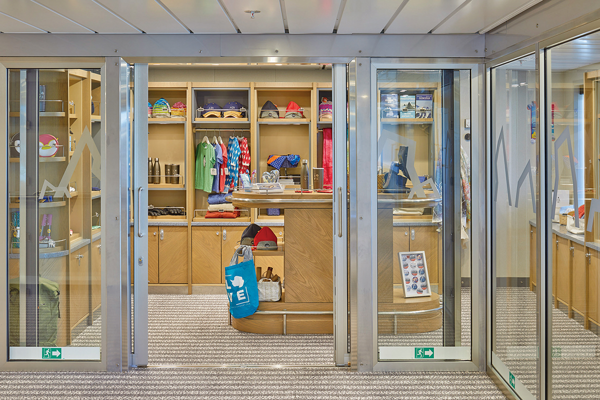 小型船でありながらジムやサウナ、読書室も完備され、クルーズ中は自由にご利用いただけます。小さなギフトショップもあり、お土産や日用品を販売しています。また、船内には医師が常駐していますので安心です。